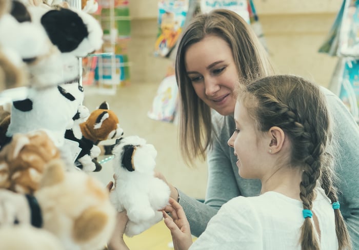 The U.S. strategy is less clearWhile that's a sizable platform to grow on, Tru Kids' intentions here in the U.S. are more nebulous. It may seek a combination of permanent stores, pop-ups, and e-commerce sales -- possibly even partnering with Amazon. However, no real strategy has been outlined, so toy makers can't expect much help in the near term.